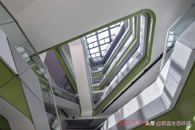 教学楼沿学习脊柱设置,校园中心生活区与学习区相互交叉