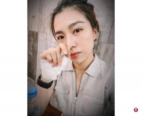 马艺瑄拍摄过程中,手指受伤。(受访者提供)