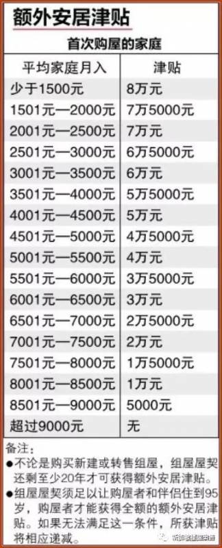 政府将从即日起把购买新组屋的家庭月入顶限从1万2000元调高到1万4000元。为了协助更多首次购屋的家庭拥有理想中的房子,不论购买新旧组屋、地区或房型,都可获得最多达8万元的安居津贴。