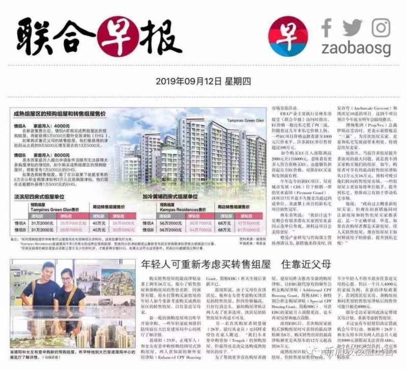 他说:“政府过去侧重新组屋买家,但现在的新措施同时让新组屋和转售组屋买家都获益,是一个正确举动。毕竟,如果首次购屋者都是买新组屋,没人买转售组屋,现有组屋屋主如何释放房子的价值,提升到私宅呢?”