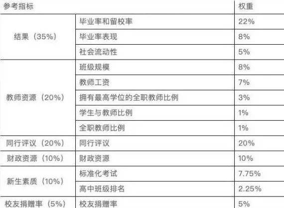 U.S. NEWS的参考指标如下: