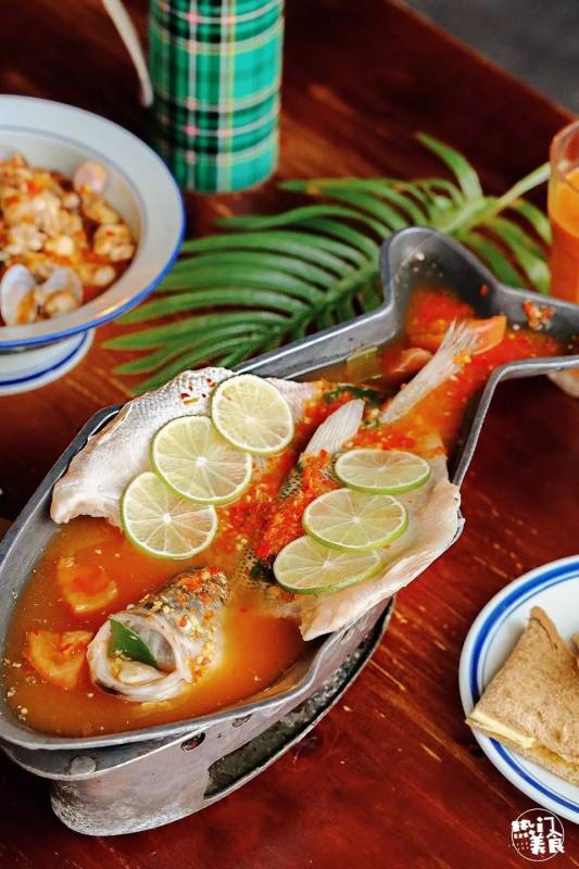 “东南亚的菜做法都十分简单,主要是看酱料。”一整条白嫩的鱼肉被开膛破肚,蒸熟后躺在器皿中,师傅同样淋上自制酸辣酱,让其从头至尾充分吸收,再撒上香菜便可上桌了。