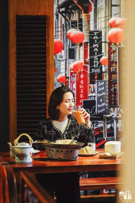 极具时代特色的灯箱招牌和狮子头,录音机、暖水瓶、黑白电视机,旧旧的行李箱等富有年代感的老五件,让人瞬间穿越到上个世纪的新加坡街头。当年中式与西式的文化在这里交融,最能代表华人文化与南洋的风情。”