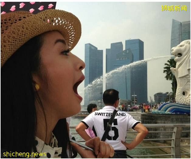 接下来,先让大家欣赏三叔在网上搜到以鱼尾狮为背景,因借景的一些趣味照片。
