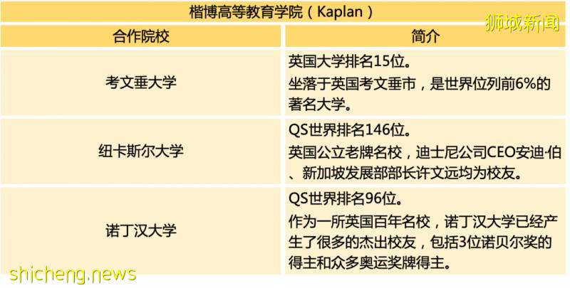 新加坡国立大学、南洋理工大学和新加坡管理大学三所新加坡公立大学世界闻名,含金量极高。新加坡私立大学亦与多所世界前200名大学合作提供联合课程,学历证书与主校区没有差别,受国际认可。毕业后可顺利转到其他国家高校继续深造。