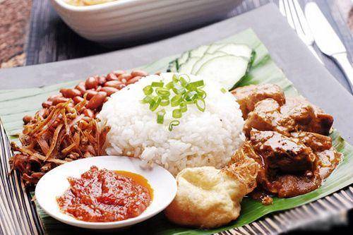 椰浆饭,听名字以为是甜甜腻腻的,其实不然,这是一道被马来西亚人民当做早餐的食物,吃起来有椰子香味,还有点辣。椰浆饭得名是因为米饭是泡在椰浆中,然后再蒸,这样的方式让米饭香浓可口,而且不会太甜,一般会配上鸡肉、黄瓜、花生米以及调味的蘸料,可以根据自己的口味调味。