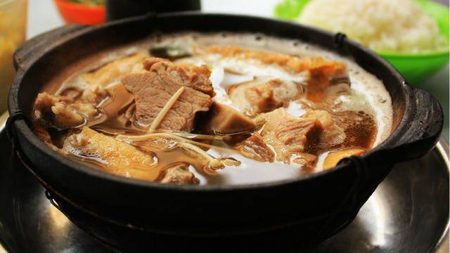 肉骨茶,是把肉骨头与药材相结合的美食,因为在食用的时候总会喝上一碗茶来解腻,慢慢的就被称为肉骨茶。在新加坡和马来西亚最为盛行,但两个国家的肉骨茶有有所差异,新加坡的肉骨茶胡椒味较重,马来西亚的则药材味道较重。炖好的肉骨茶肉质滑嫩细软,配合一点药材的味道,十分独特。