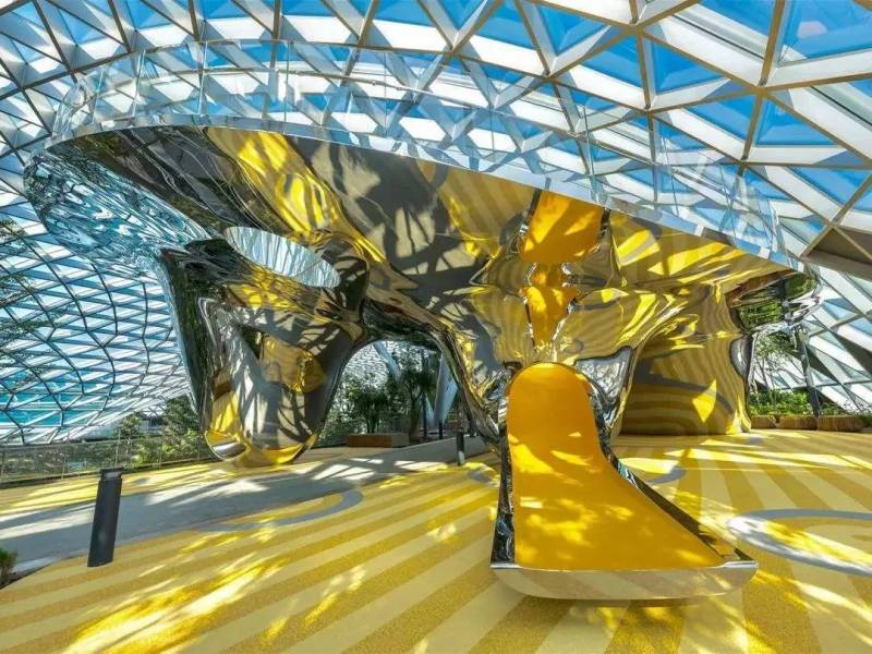 奇幻滑梯由四合一的滑道组成,本身也是一座宏伟的艺术雕塑作品。