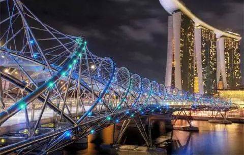 新加坡双螺旋桥是世界上首座双螺旋人行桥。设计人员受DNA结构的启发,意欲体现“生命与延续、更新与成长”,双螺旋桥于2010年夏天正式通行,凸显了城市的精神和活力。