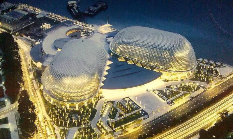 新加坡艺术科学博物馆,由建筑大师摩西·萨夫迪设计,其外形特征宛若瀑布中盛开的莲花,其“花瓣” 高度不一,外观利用游艇常用的聚合物,打造出闪闪发光的效果。