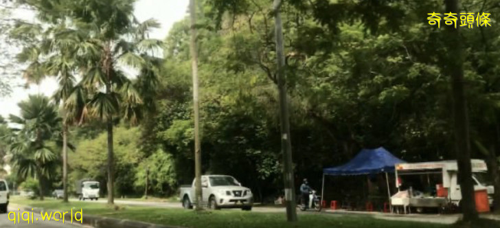 根据观察,道路两旁的小贩摊位至少有10摊,当中一些小贩甚至在路边开起桌椅做生意,有民众开始把车子停在路边光顾。