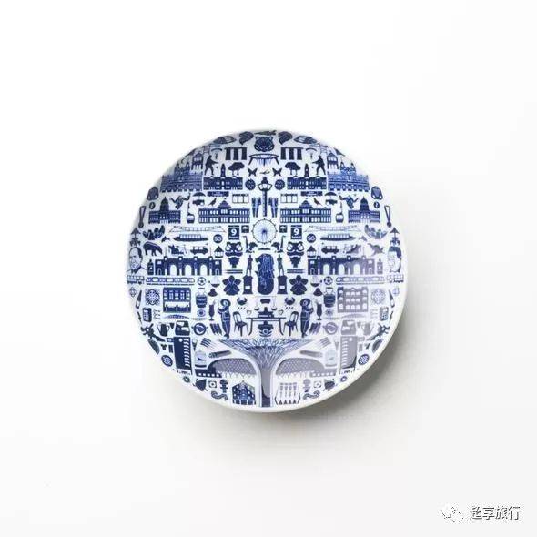 新加坡纪念品 纪念品Supermama的One Singapore青花瓷盘,融鱼尾狮、摩天轮、擎天树、李光耀的眼泪、兰花、MRT等各种新加坡元素于一体,完美地展现了新加坡的特色以及多元文化。