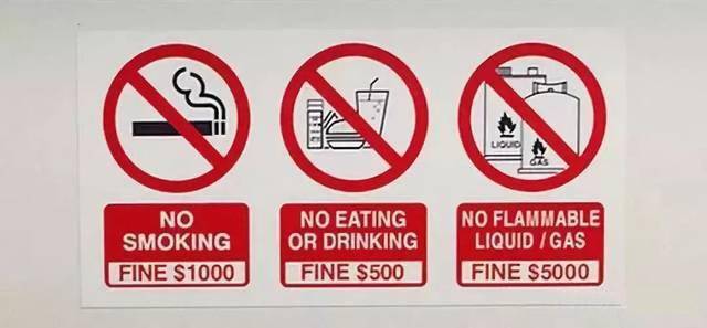 以严格出名的新加坡,地铁里的禁止标识明文规定:
