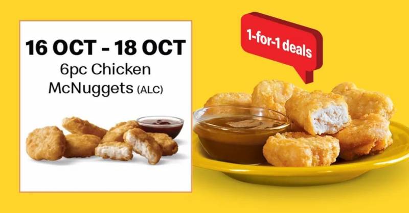 麦当劳推出APP,你可以享受6pc Chicken McNuggets买一送一,这也意味着你一次可以吃12块!好过瘾呐!!!