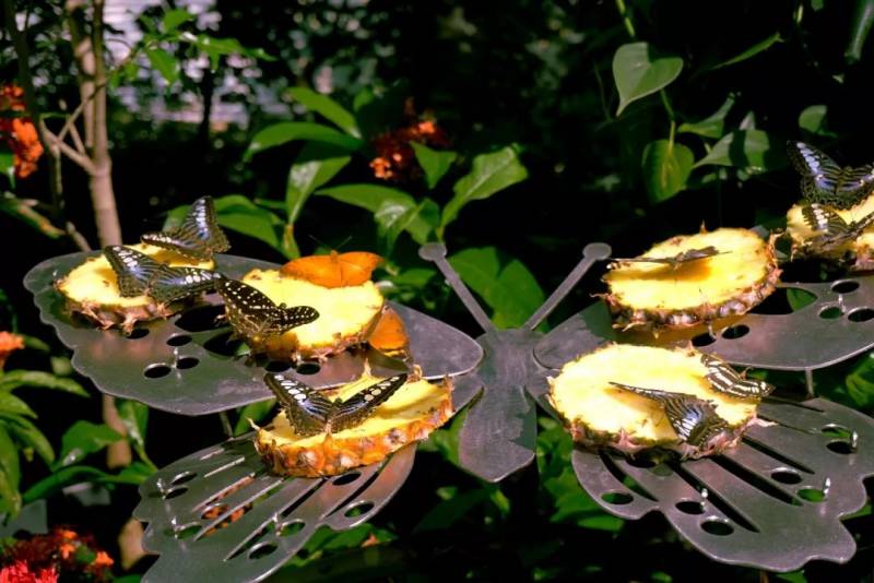 醒了后就直奔长廊末尾的蝴蝶园了,大清早逛的人很少,这时候的蝴蝶精力特别旺盛,热带国家名不虚传呀,喂蝴蝶的都是新鲜的菠萝肉,走进去就闻到了清新的香气,心旷神怡!