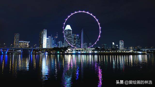 坐落于新加坡地标之一的金沙酒店的北侧,可以登上全景观景舱俯瞰滨海湾,也可以从鱼尾狮喷泉这一侧,拍摄到金沙酒店和摩天轮的全景,非常惊艳。