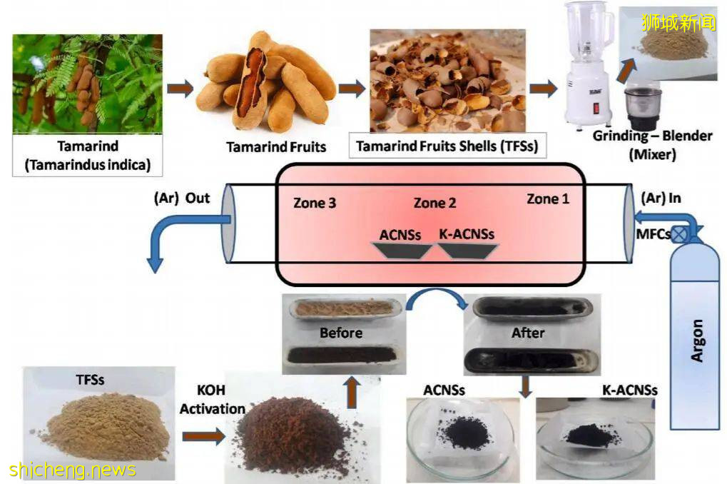 这个小组由来自南洋理工大学、西挪威应用科技大学、阿拉嘎帕大学的研究人员组成,他们对富含碳元素的酸豆壳进行处理,将这些废料转化为碳纳米片,这种材料是汽车、公交车、电动车、火车等交通工具的储能装置——超级电容的关键组成部分。