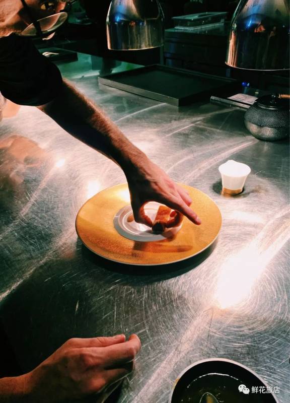未曾想,我们会被邀请到开放厨房中近距离观看厨师们的菜品制作过程,真的是非常独特的体验。