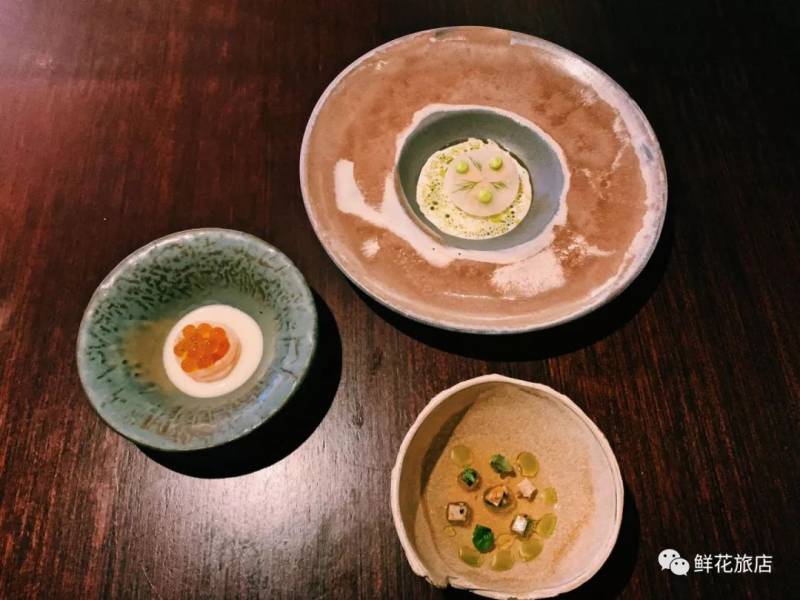 餐厅整体是现代欧洲菜系,主厨之前在澳洲和荷兰的米其林餐厅工作过,所在餐厅也都是开业不久便摘星的。主厨介绍自己履历时不无骄傲,不免让人感受到其满满的野心,也不禁让我们联想到赶在IPO前到岗的CFO一类的狠角色。