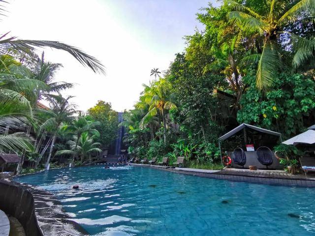 之前做圣淘沙攻略,带娃出行最推荐的是世界节庆酒店,无奈国庆这几天也是房价飚高,我在综合比对后选了一下相对经济的圣淘沙喜乐度假酒店。主打特色是酒店房价相对优惠,环境原生态,有很多动物植物和瀑布,临近海滩很方便等。各大旅游网站也是好评如潮,所以就放心下订了。