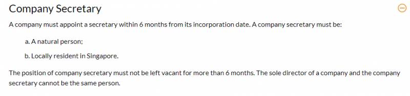 公司必须在公司成立之日起6个月内任命一名秘书。公司秘书必须是: