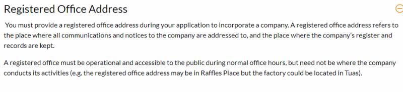 公司必须要有新加坡本地的注册地址,实际经营地址可与注册地址不同。