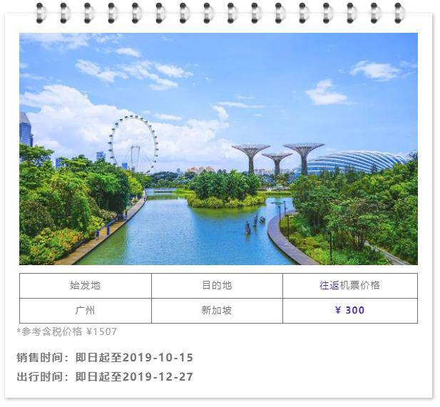 这次是中国南方航空带来的优惠,国庆假期过后机票都大幅度跳水,不如调个年假去新加坡玩一波吧!