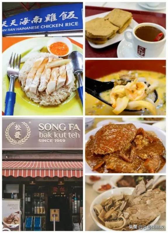 娘惹骨肉茶、天天海南鸡饭、娘惹叻沙(Laksa)、咖椰土司、辣椒蟹