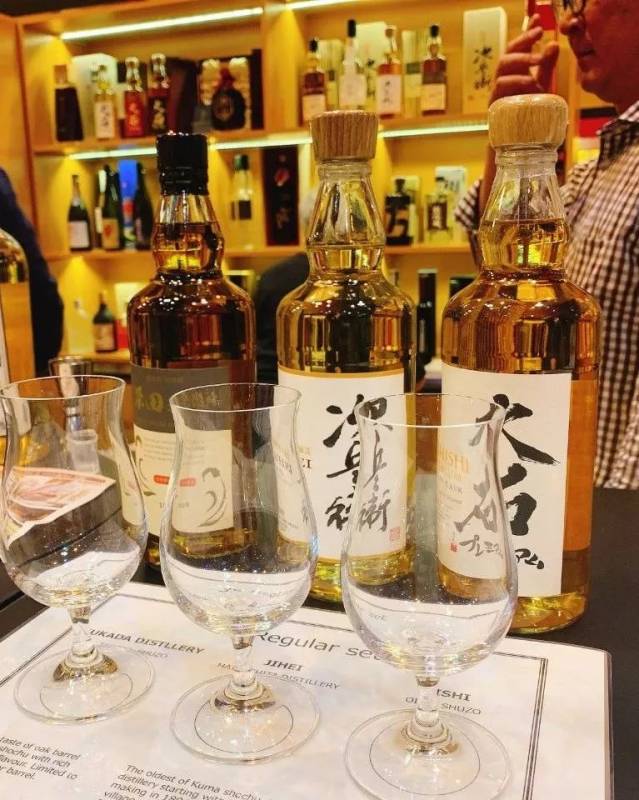 在展会中部区域,还有一个很引人瞩目的展台,就是日式清酒和寿司展位了。本次参展的是junmai daiginjo日本清酒和enoteca威士忌。