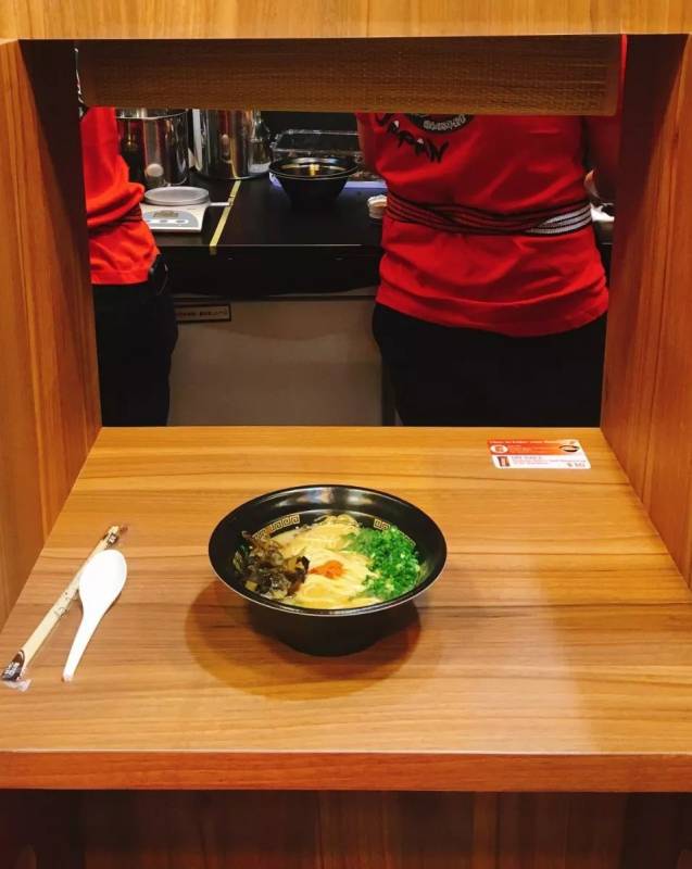 本次采用的拉面是纽约限定快熟面。座位形式是和日本本土相似的格子式。左右座位的客人可以互不干扰,服务人员上好菜后会拉下竹帘,给客人独自享用美食的空间。