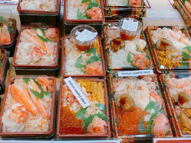 绝对不能错过的还有来自北海道水产。长长的蟹腿,搭配海胆、三文鱼、鱼卵和贝类,近十种搭配,价格S$18新币起。吃完一份幸福感爆棚。