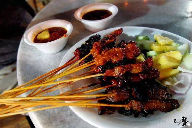 蘸一层厚厚的沙爹酱一起入口