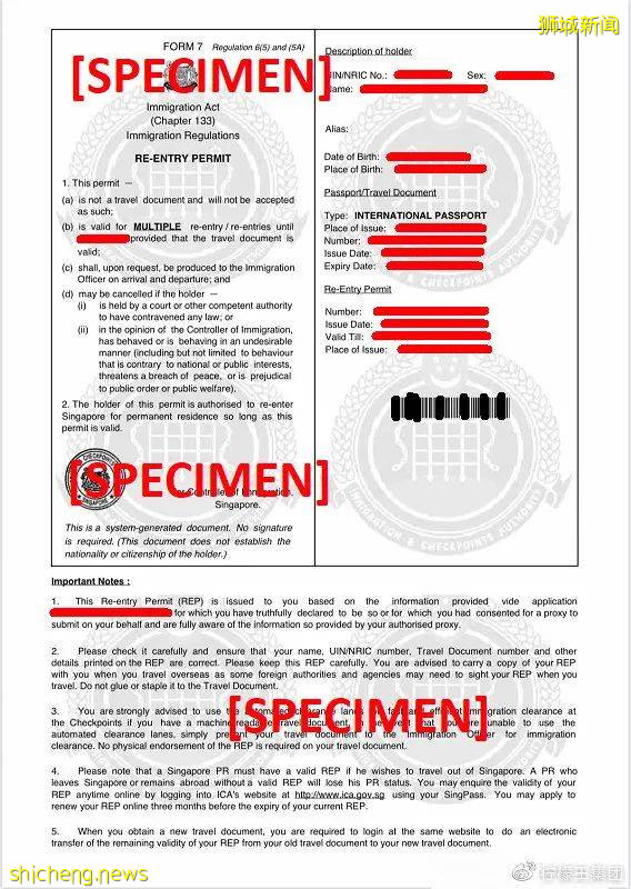 新加坡移民和关卡局可能会根据您获得永久居留权的方式来考虑更新您的再入境许可证,要求提供其他信息。