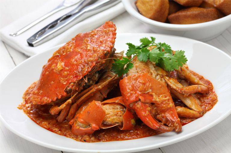 辣椒螃蟹也是新加坡的招牌菜之一,喜爱海鲜的游客一定要尝试。将整个的大螃蟹切开,连肉带壳加上茄汁、辣椒一起拌炒。辛红浓稠的蕃茄辣椒汁淋在新鲜螃蟹上,香辣中带着微甜的可口滋味,红色鲜香的酱汁散发着香蒜与米醋的香味,还可以配中式煎馒头,沾酱汁食用。