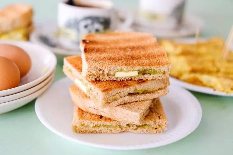 这道简单的吐司是典型的新加坡早餐,炭烤或香焗面包片包裹着冷黄油碎和一大抹椰果和鸡蛋制成的咖椰酱,配上一颗半熟水煮蛋,再来一杯传统的东南亚白咖啡,绝对让你流连忘返。