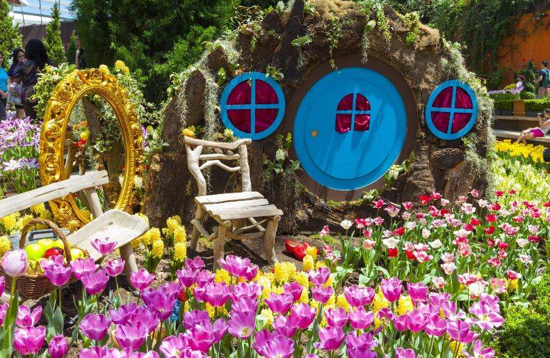 白天可以参观两个温室,观赏花样万千的植物。晚上可欣赏精彩的灯光秀,感受花园夜景,无缝隙游览,让人流连忘返!