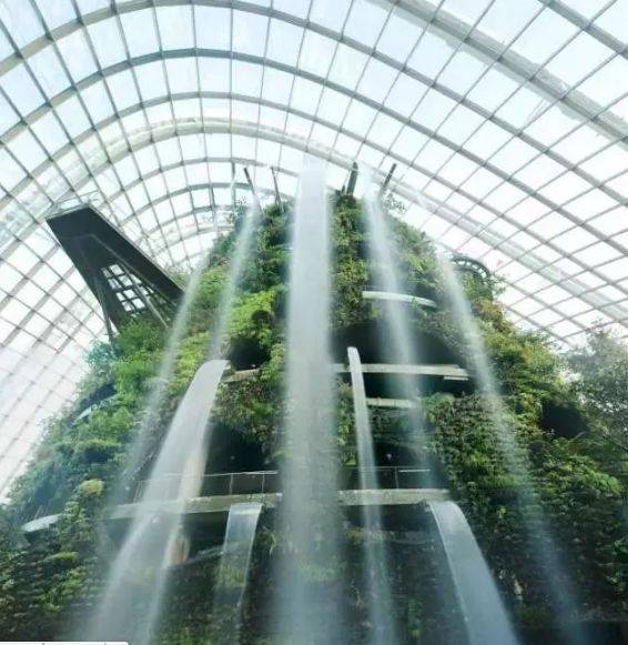 新加坡从“花园城市”变成了全球化“花园中的城市”,环境可持续性贯穿着滨海湾花园的整个理念,最大的特色是从热带雨林中的优势树种中汲取到灵感,树枝可以用来发电,滨海南花园中心的冷却温室馆还获得了2012年世界建筑节(WAF)年度最佳建筑奖。