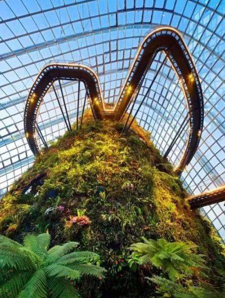 这里可谓是热带雨林的浓缩版,模仿了热带高海拔地区环境,人造小山上依照比例栽种了原本生长于海拔1000-3500米的植物。步入云雾林,在山地中探索来自凉爽潮湿的热带山区的兰花草、瓶状叶植物和蕨类。
