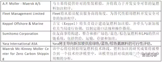 伊藤忠商事牵头的这个升级版合作,很大程度上与两个月前(2021年3月)由吉宝和住友商事发起的另一个合作框架相对应。在这个合作备忘录中,加入了马士基集团(APMoller - Maersk A/S)、Fleet船管(FleetManagement Limited)、马士基Mc-Kinney Moller零碳航运中心和雅苒国际(Yara International ASA),其目的同样是研究在新加坡建立一个全面的、有竞争力的氨燃料船舶加注供应链体系。