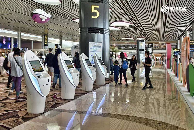下面我们来讲离境的部分。新加坡樟宜机场“Changi Airport ”采用了“畅快通行 Fast and Seamless Travel (FAST)”系统帮助游客自助登机,少了很多柜台,以自助值机亭“Kiosk Machine”来取代。