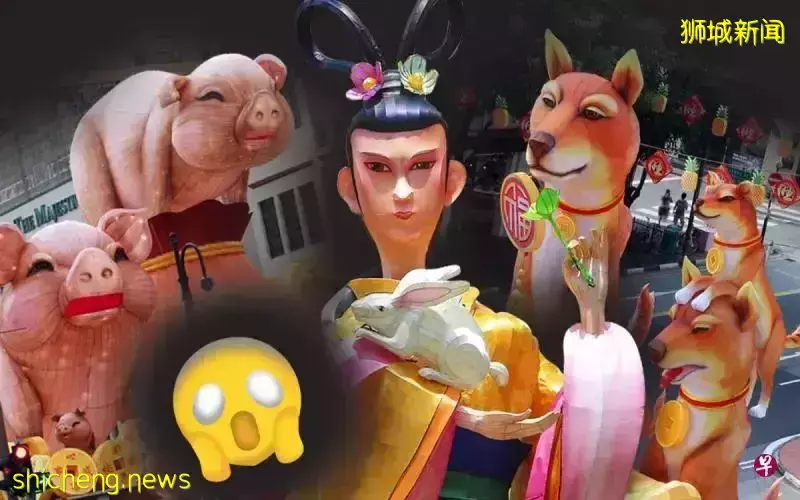 过去牛车水的灯饰经常被吐槽 - “脏脏猪”、“狼狗不分”、“吴刚版嫦娥”(图片来自早报数码)