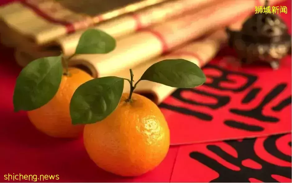 送礼物 – 在新加坡去亲友家拜年,带两粒柑橘就行。桔有“吉”之意,广东话中“柑”与“金”同音,两粒柑橘象征着“大吉大利”,“好事成双”。拜年时,把两粒柑橘放在小红袋里,方便携带。这个习俗不叫“送柑”,而叫“换柑”,因为客人临走时,主人会回赠两粒柑橘,有互赠吉祥的寓意。