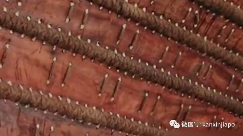 “黑石号”采用木板缝合的方法,将木板通过孔洞穿插结合。整艘船,需要缝合20多万针。而且,绳子是由椰壳纤维制成的。