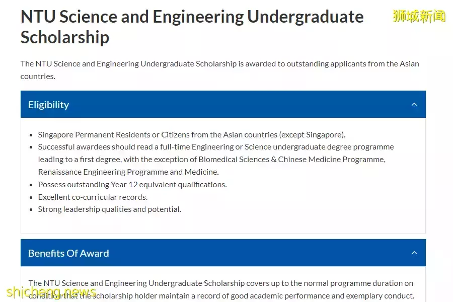 南大理工科奖学金(NTU Science and Engineering Undergraduate Scholarship)颁发给来自亚洲国家的优秀申请者。
