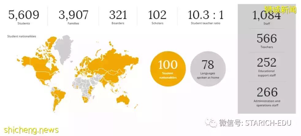 目前,UWCSEA共有5609个学生,1084个教职工。师生比例为1:10.3。学生来自全球100个不同的国家,居家使用语言多达78种。