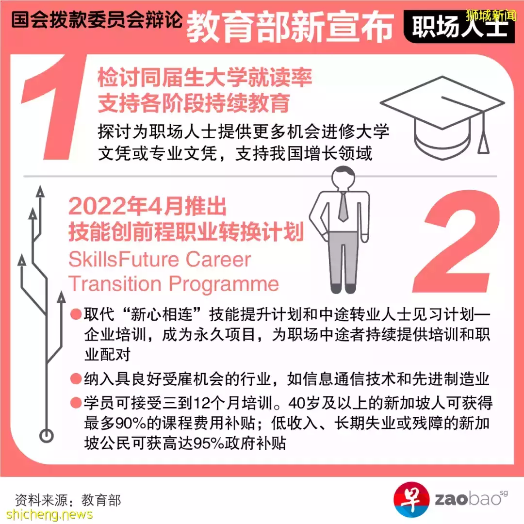 教育部将探讨为职场人士提供更多机会进修大学文凭或专业文凭,支持新加坡的增长领域。大专教育学府包括大学在内,会检讨持续教育课程的选项与学额分配。