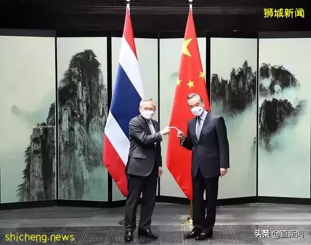 2022年4月2日,国务委员兼外长王毅在安徽屯溪同来华访问的泰国副总理兼外长敦举行会谈。