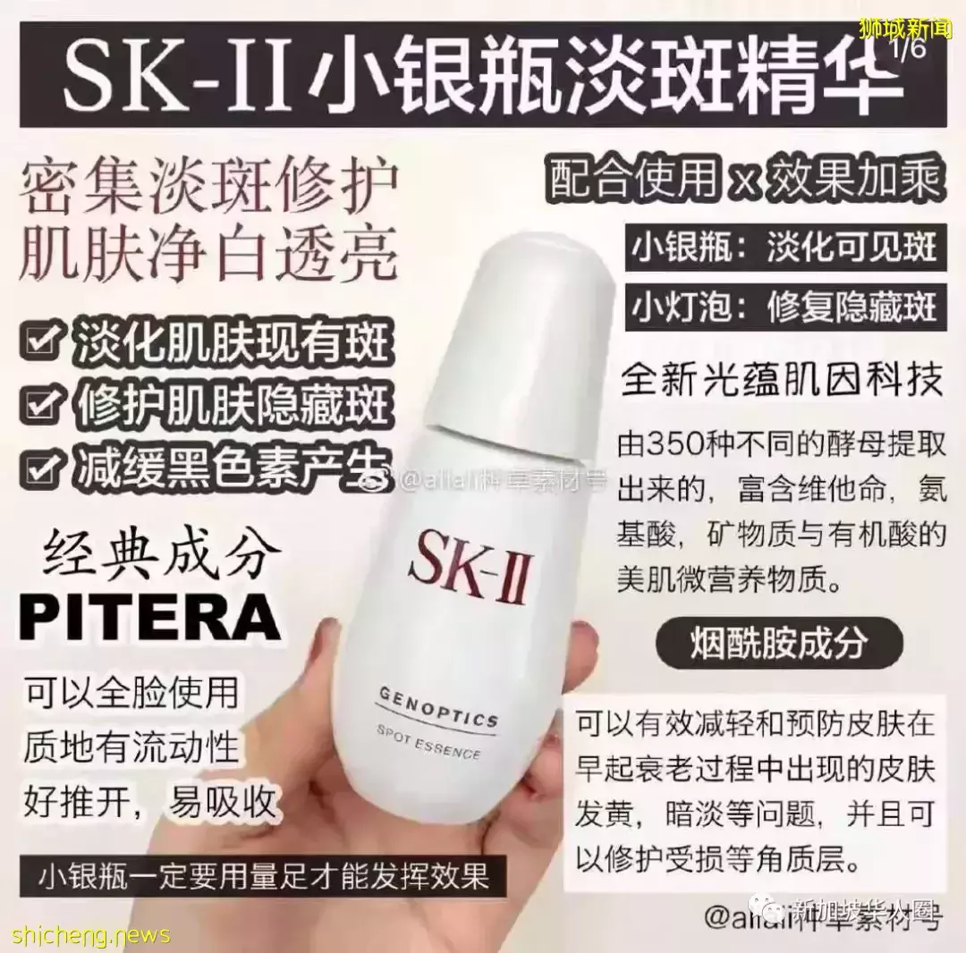它的主要功效就是祛斑,针对击退底层斑点。要提亮肤色,要美白,要祛斑,要淡化痘印,试试它吧,坚持使用让你肤色提亮几度哦,SK2家的东西虽然价格贵点点,但真的是效果明显看得到。