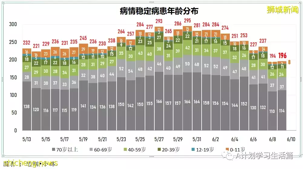 6月9日,病情稳定病患196人,其中,151人是60岁以上年长者。