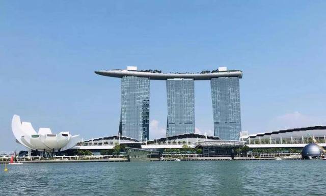 与滨海花园相邻是大名鼎鼎的滨海湾金沙酒店。其设计绝妙之处在于,建筑造型为三座摩天大楼顶着一条大船,宛如漂浮在空中的航母。